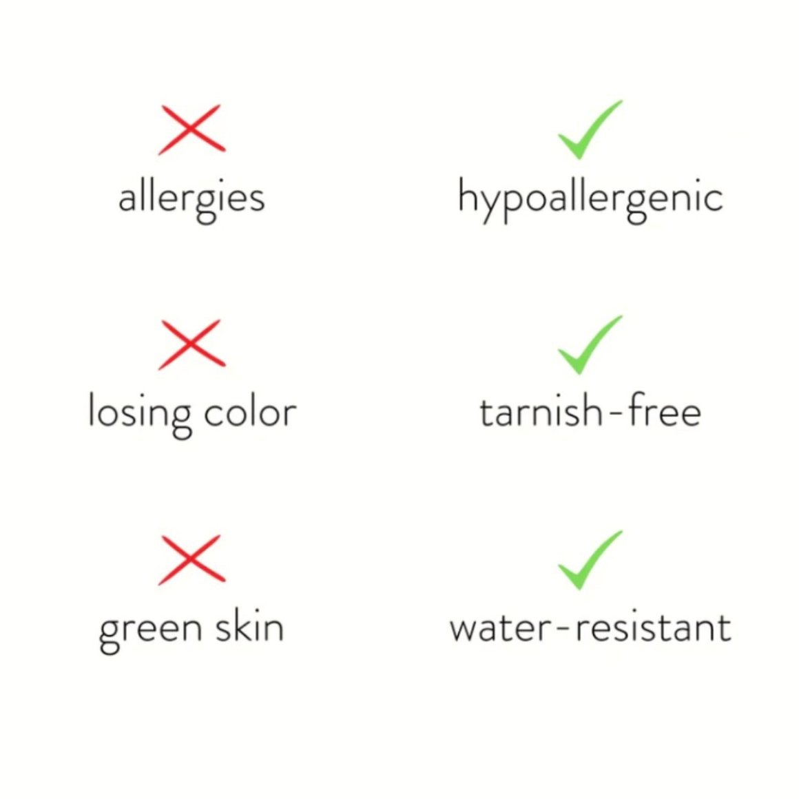 Made with stainless steel, you never need to worry about fading or tarnishing jewelry ever again.
